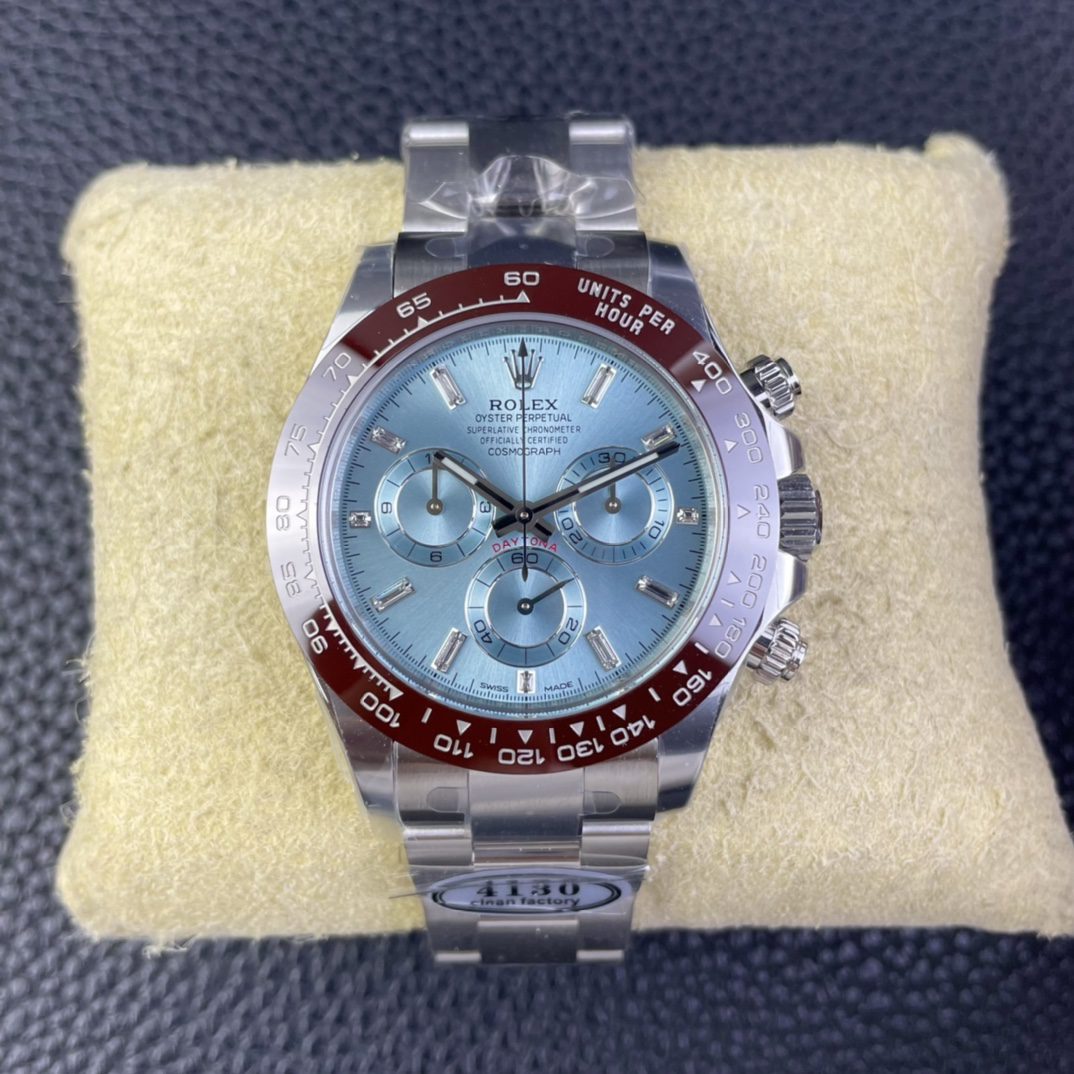 The Daytona is another highly coveted Rolex model, and Clean Factory’s replica is a masterpiece. It includes a flawless ceramic bezel, platinum-coated numerals, and a super clone 4130 movement, making it one of the best Daytona replicas available.